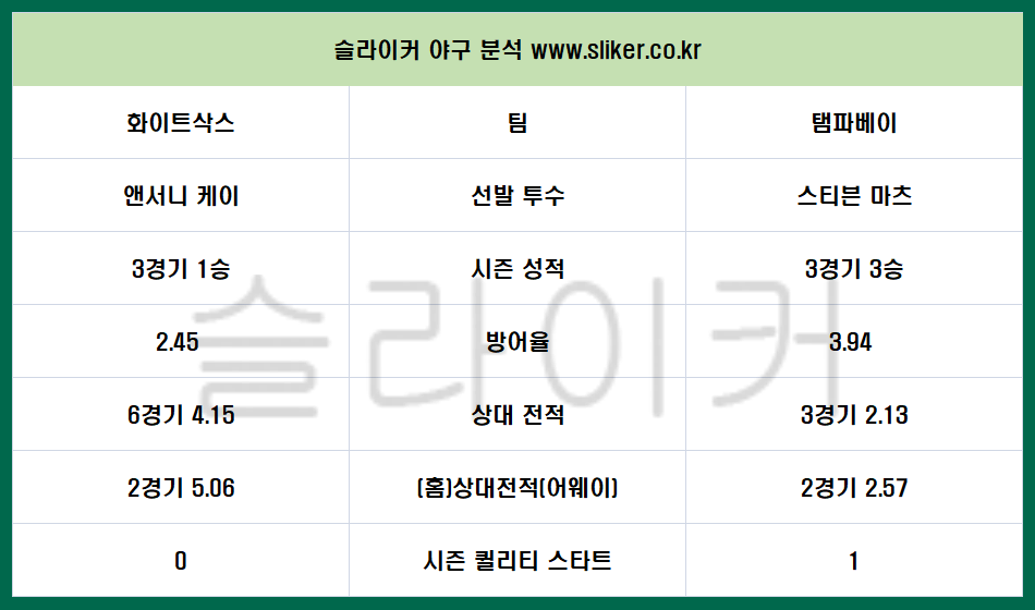 6. 화이트삭스 탬파베이